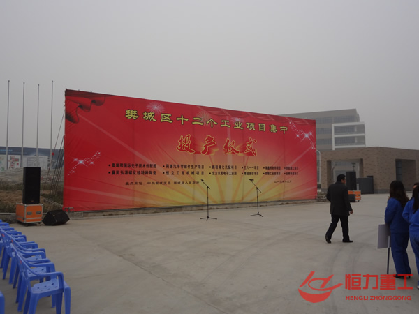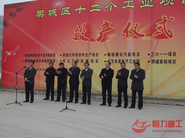 恒立重工一期工業(yè)項目投產(chǎn)儀式 項目位于樊城區(qū)萬州大道南側(cè),占地64母,總投資1.5億元,由湖北恒立工程機(jī)械有限公司投資建設(shè),湖北恒立工程機(jī)械有限公司是一家集科研開發(fā)、生產(chǎn)經(jīng)營于一體的科技型工業(yè)有限公司,公司資產(chǎn)總值8000萬,公司主要專業(yè)研制開發(fā)生產(chǎn)