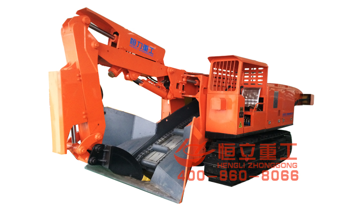 履帶式挖掘裝載機(俗名:扒渣機)是一種連續生產的高效率出礦設備,主要用于礦山巖巷、半煤巖巷掘進,也可以用于引水洞、鐵路隧道施工和國防洞窟施工中的裝載作業,可適用于中型斷面,坡度+20°~-32°的巷道。