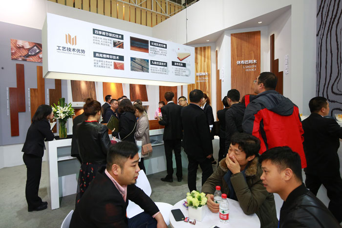 三、“絲綢漆面原木地板”引領市場流行色彩,在淺灰中融入“胡桃、藏青等色素”,板面色彩豐盈、色調殷實,盡顯非凡品味。
